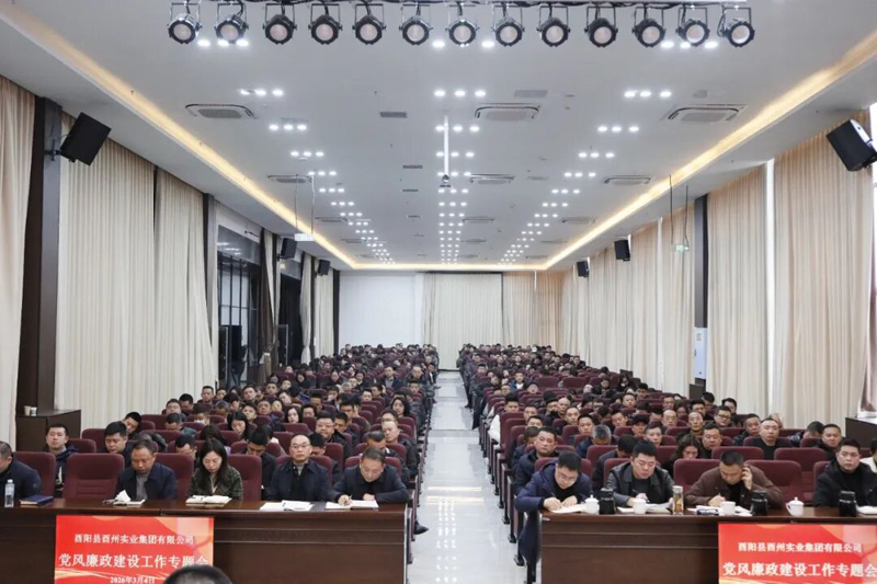 為深入貫徹全面從嚴治黨戰略方針,持續深化黨風廉政建設和反腐敗工作,壓緊壓實管黨治企政治責任,3月4日,酉州實業集團召開2026年黨風廉政建設工作專題會。會議旨在筑牢全員廉潔思想防線,為集團新一年的發展劃定“路線圖”、明確“任務書”。集團黨委副書記、總經理冉景和主持會議,縣紀委監委派駐縣財政局紀檢監察組組長謝其華應邀蒞臨指導。集團全體領導班子、中層干部、全體黨員,子公司副職以上干部,項目建設、財務融資、物資采購、兩違管控、鄉村振興工作隊員等關鍵崗位,桃花源地產公司、新城公司全體干部職工參會。會議分為兩個階段進行,采取“警示+傳達+部署+表態+指導”的五維聯動模式,環環相扣、步步深入,通過全方位的思想洗禮和責任傳導,推動集團2026年黨風廉政建設工作走深走實。